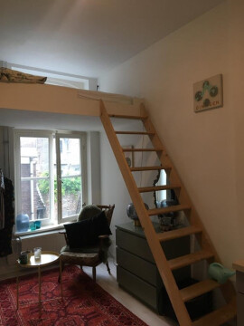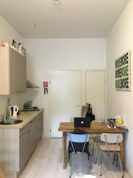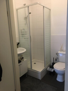 De studio heeft een eigen keuken en badkamer met douche en toilet. In de badkamer bevindt zich ook de wasmachine aansluiting.