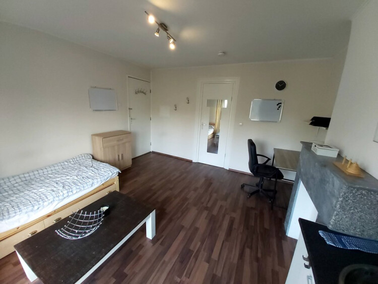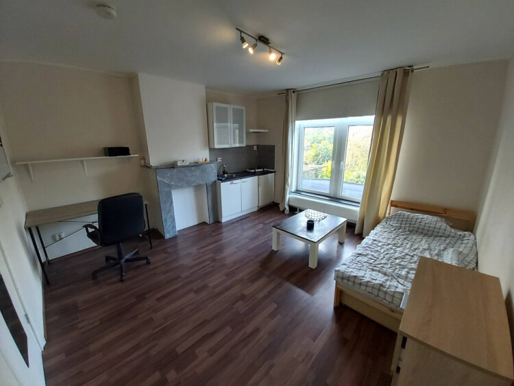 Compacte deels gemeubileerde studio van ca 18m2 voorzien van een eigen kitchenette en badkamer. De studio is gelegen op de eerste verdieping aan de achterzijde van een jaren dertig woning in de wijk Scharn te Maastricht. De studio is voorzien van een laminaatvloer en geniet veel lichtinval. De kitchenette is v.v. een koelkast, 2 pits elektrische kookplaat, koelkast met vriesvak en afzuigkap. De badkamer is uitgerust met een royale massage douche cabine, toilet en wastafel.
