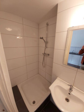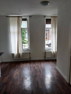 Ruime studio van ca 32m2 voorzien van een eigen kitchenette, rolluiken en eigen badkamer. De studio is gelegen op de begane grond aan de voorzijde van een zeer eenvoudige jaren dertig woning in de wijk Scharn te Maastricht. De studio is voorzien van een laminaatvloer. De kitchenette is v.v. een koelkast, 2 pits elektrische kookplaat, koelkast en afzuigkap.