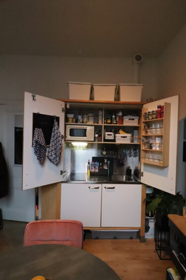 Tegen een meerprijs van € 30,00 p.m. kan de studio volledig gemeubileerd worden opgeleverd of door overname van de meubels van de huidige bewoner.